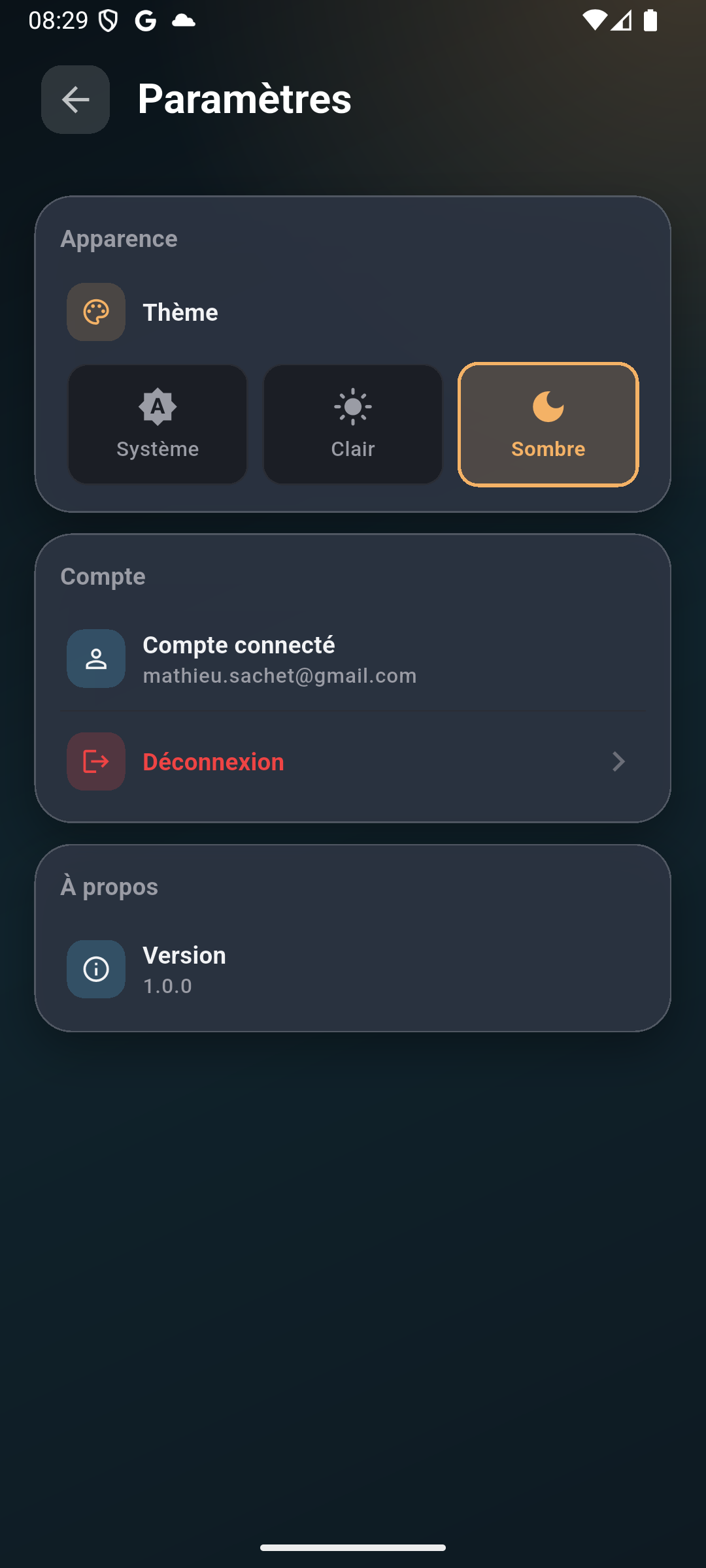 Apple & Google login. Données privées par défaut.
